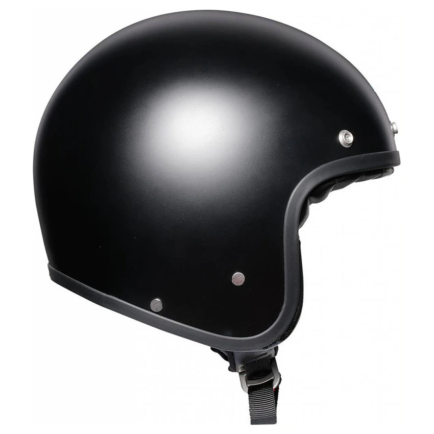 The retro motorcycle helmet AGV X70 is an ode to the very first fiber jet helmet in 1954, worn by racing legend Renzo Pasolini. At that time, there were few to no full-face helmets, so competitions with this jet helmet were held. AGV invented the fiber jet helmet in 1954. Over time, the classic game has evolved and surpassed the safer full-face helmet. But it never went out of fashion. X70 reconstructs the allure of the shape of the original, with modern protection and comfort features. The X70 is a tribute to the great champions of the 50s-60s.