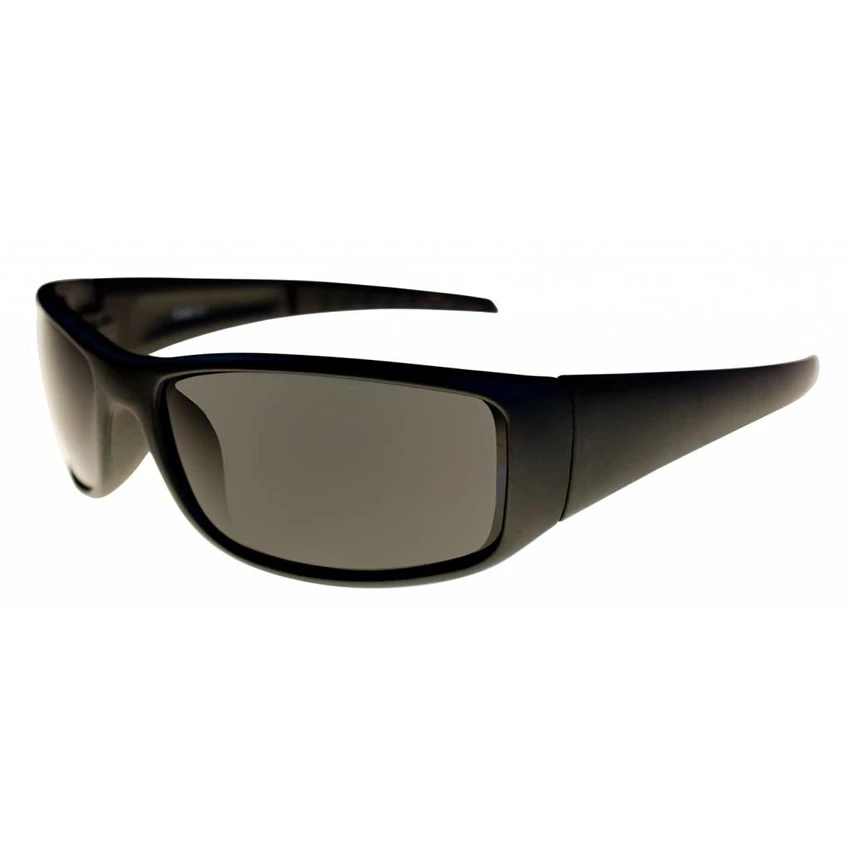 These sunglasses from Bercom have a sporty look. The frame is made of polycarbonate. The Smoke colored lenses that are also made of polycarbonate give these glasses a sturdy look.