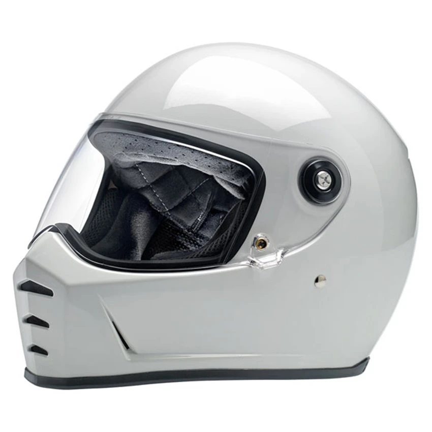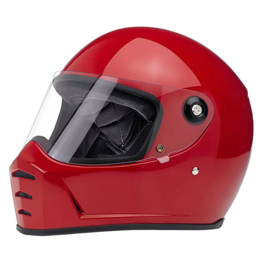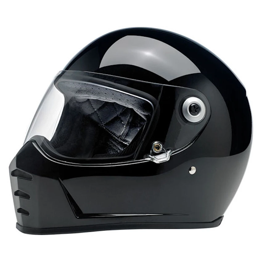 Progressively styled and rigorously tested, the Biltwell Lane Splitter, ECE and DOT approved, helmet is a top choice for riders who demand comfort and high performance. The aggressive looking lines of this helmet truly set it apart in the retro-styled helmet market. Features include a rugged ABS outer shell with hand-painted finish, ventilated and shock-absorbing EPS safety liner with gorgeous hand-stitched interior padding, removable cheek pads, clear anti-fog and anti-scratch CE-certified shield. Also the Lane Splitter contains audio communication pockets in ear recesses, Double-D chin strap lock mechanism and chin bar vents and venturi vent for ample airflow.