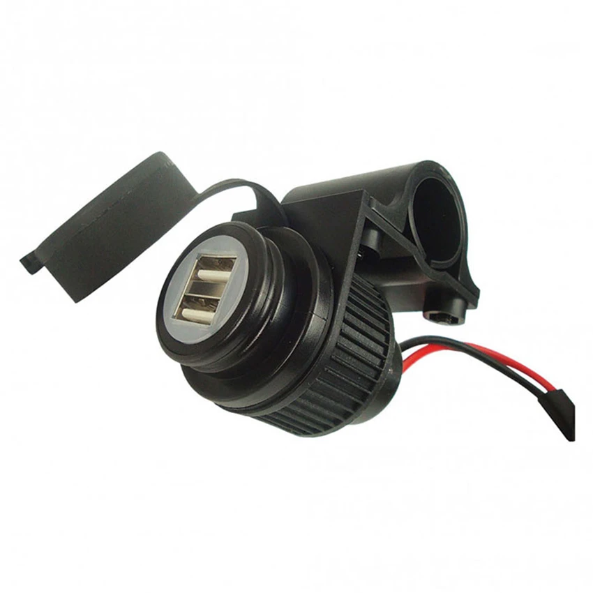 For mounting on the handlebar, equipped with a double USB connection (2x 5V) and a watertight seal.