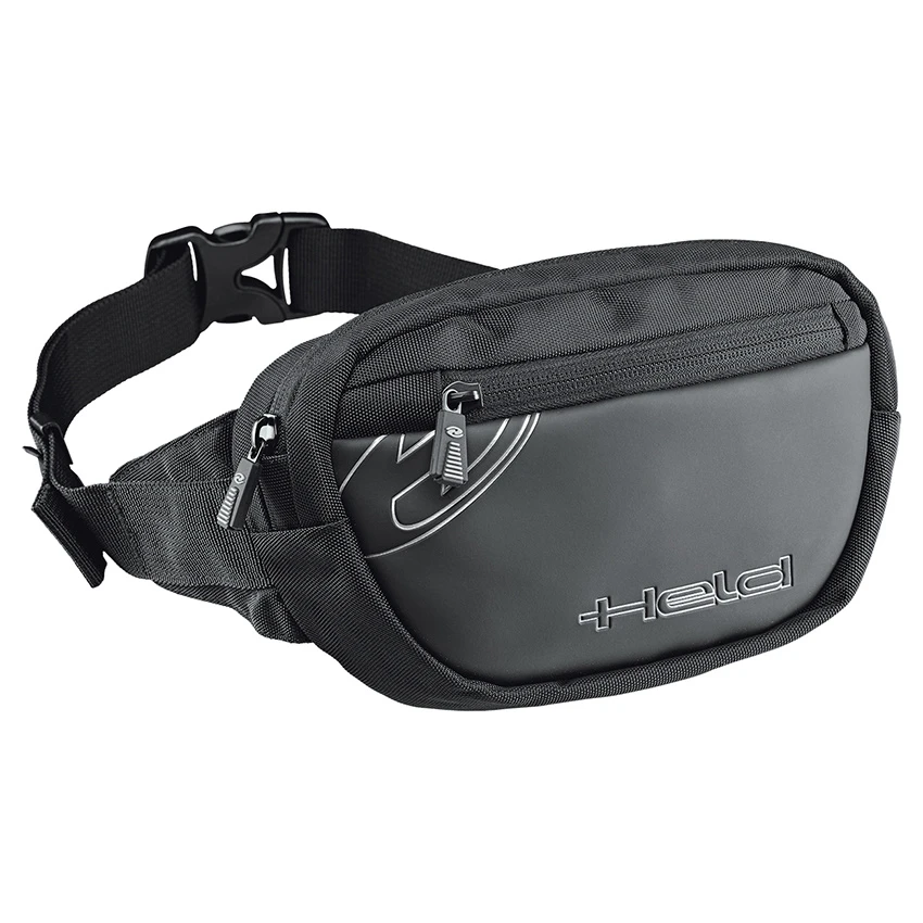 A leather combination or overall simply offers few storage options. This waist bag manages to provide the necessary storage space for, for example, sunglasses, important documents, a wallet and smartphone. The straps of this Held waist bag are adjustable.