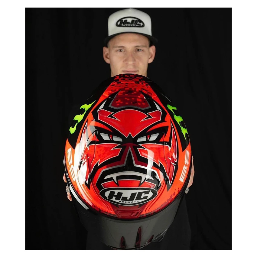 The shell is constructed of HJC’s proprietary Premium Integrated Matrix Plus material to provide enhanced Shock-Resistant performance for a more comfortable and lighter helmet. The RPHA 1 Fabio Quartararo replica is fully certified according to the ECE 22.06 standard and FIM Racing homologated. Equipped with the Pinlock ready Clear HJ-35 visor. The anti-fog Pinlock 120 lens is included din the box. There you will also find an extra transparent racing spoiler perfect for on te circuit.