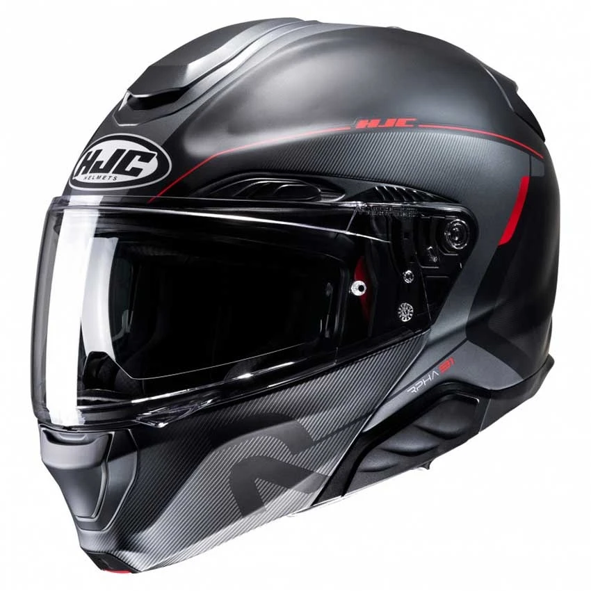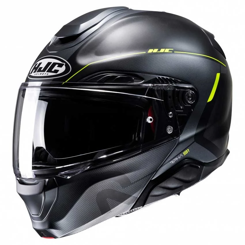 The HJC RPHA 91 Combust flip-up helmet was engineered for all-day comfort. The new Premium Integrated Matrix EVO shell (P.I.M. EVO) provides enhanced shock-resistant performance and is lightweight by using reinforcement materials that include carbon-aramid, carbon fiber, glass fiber, organic non-woven fabric, and linen fiber (natural fiber).