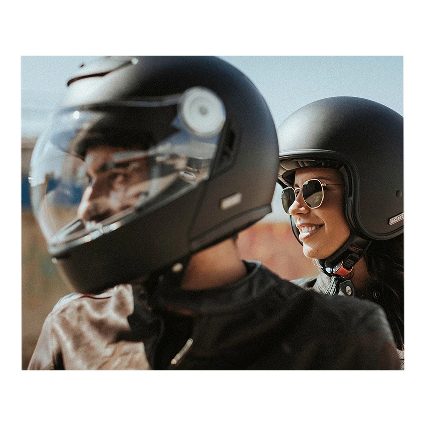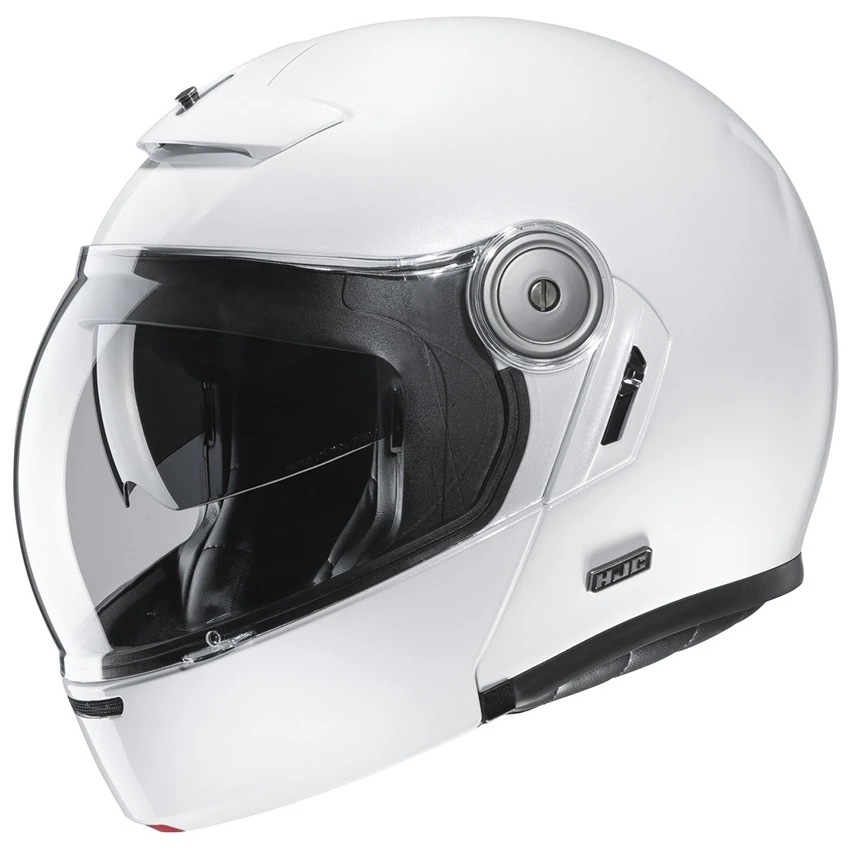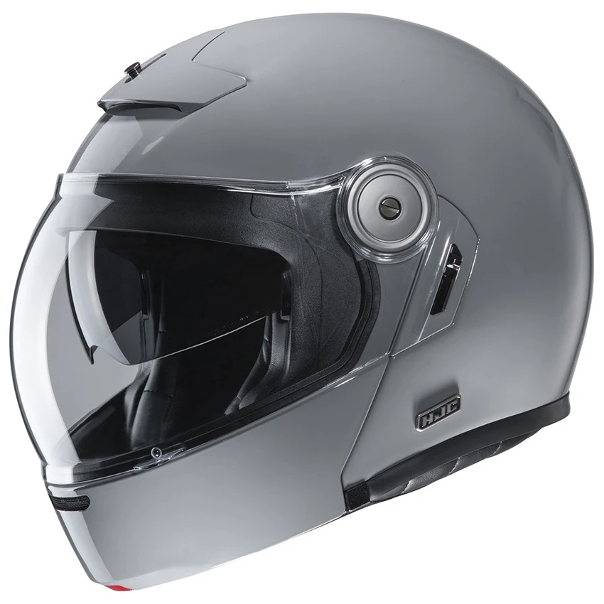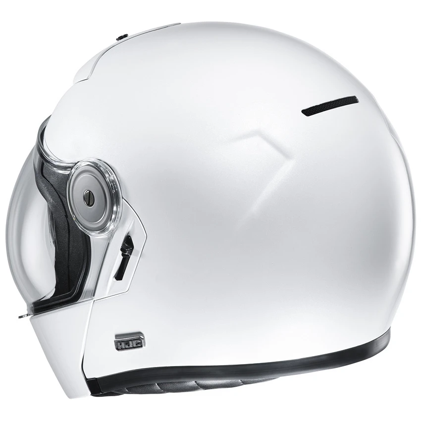 System motorcycle helmet in vintage style, with bubble face screen and integrated sun visor, for a perfect new retro style. The convex bubble visor provides a wide field of view all around and you benefit from all the advantages of a flip-up helmet. The V90 is also standard prepared for the HJC communication systems SMART HJC 10B and 20B Bluetooth. [Specs]