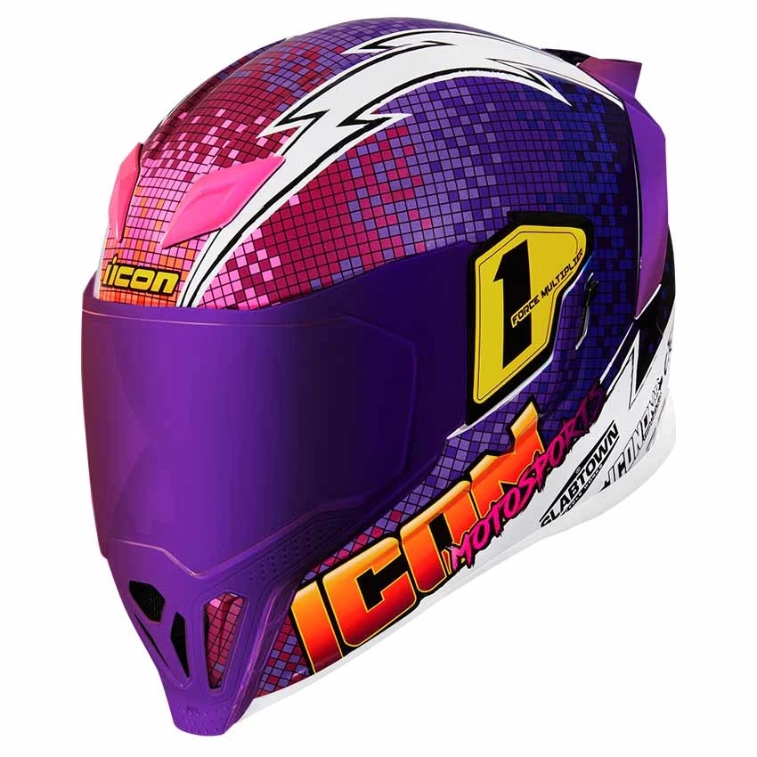 The Icon Airflite Quarterflash motorcycle helmet’s ventilation system consists of strategically placed air vents, intakes, air channels and exhaust ports. The oversized chinbar intake enhances airflow, keeping you cool by routing air where you need it most. A decrease of both drag and weight was achieved by sculpting the traditional neckline of the Icon Airflite to avoid jacket or suit interference.