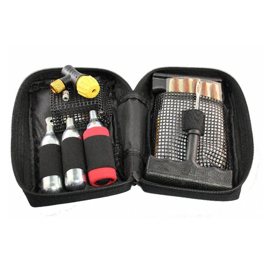 Packed in a sturdy nylon bag with zipper. Recommendation: After the repair, the tire pressure should be increased as soon as possible in accordance with the manufacturer’s instructions, and the defective tyre must be replaced by a professional.
