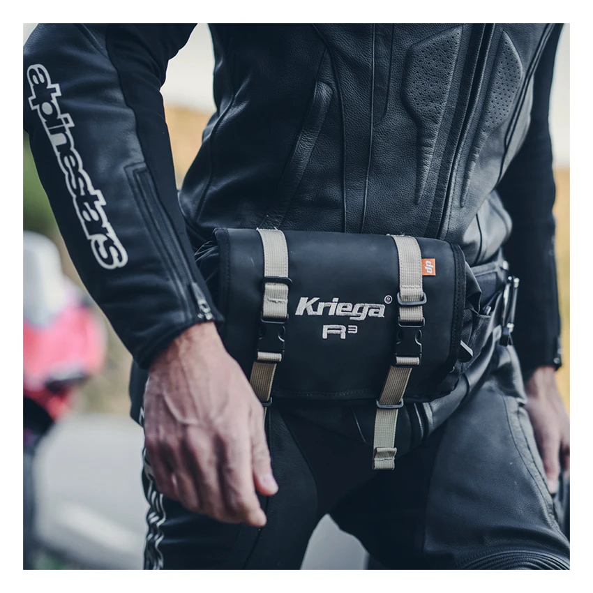 The R3 is the most practical waist-pack for all journeys, adjusting quickly and easily to gain access to your money, camera, sunglasses etc. Kriega’s signature alloy belt adjuster sets the waist tension in seconds and eradicates loose strap ends giving an uncluttered design. Once the belt tension has been released the pack can be easily be moved around to gain access to items, without the need to take off and on each time.