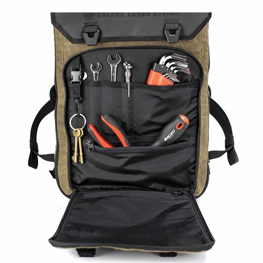 The Roland Sands Design X Kriega Roam 34 Backpack is constructed from RSD’s propriety wax cotton together with 1000D Cordura® and combined with Kriega’s groundbreaking Quadloc-Lite™ harness, to create a marriage of classic style and unrivalled functionality.