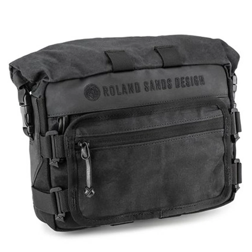 The Roland Sands Design X Kriega Roam Handlebar Bag is ideally suited for cruiser bikes with drag bar or t-bars with high risers, whilst the Velcro® Molle mounting system also enables a variety of other mounting options. Constructed from RSD’s propriety wax cotton together with 1000D Cordura® and super tough hypalon reinforcement to give a classic look with modern technical twist.