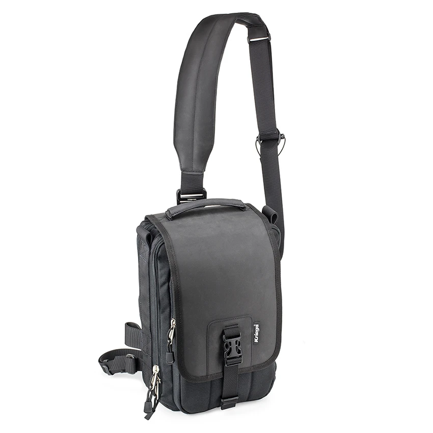 The Sling EDC is a variant of the normal Sling 1000D Cordura bag that should be worn diagonally across the back. The 8L main compartment offers space for all your daily business. The combination of 1000D Cordura, Hypalon reinforcements, Acetal buckles, black anodized aluminium adjusters and 420D ripstop nylon makes this Sling EDC from Kriega virtually indestructible. The heavy-duty oversized YKK zippers offer you the guarantee that you will have access to your belongings under all circumstances, even with gloves that are easy to operate. On the inside of the transhipment, there is an extra compartment of armoured mesh. At the front of the main compartment is also a lined zipper pocket that even fits a 10 “tablet. The Sling EDC comes with a padded adjustable shoulder strap that can be worn both left and right and a waistband for extra stability on the bike.