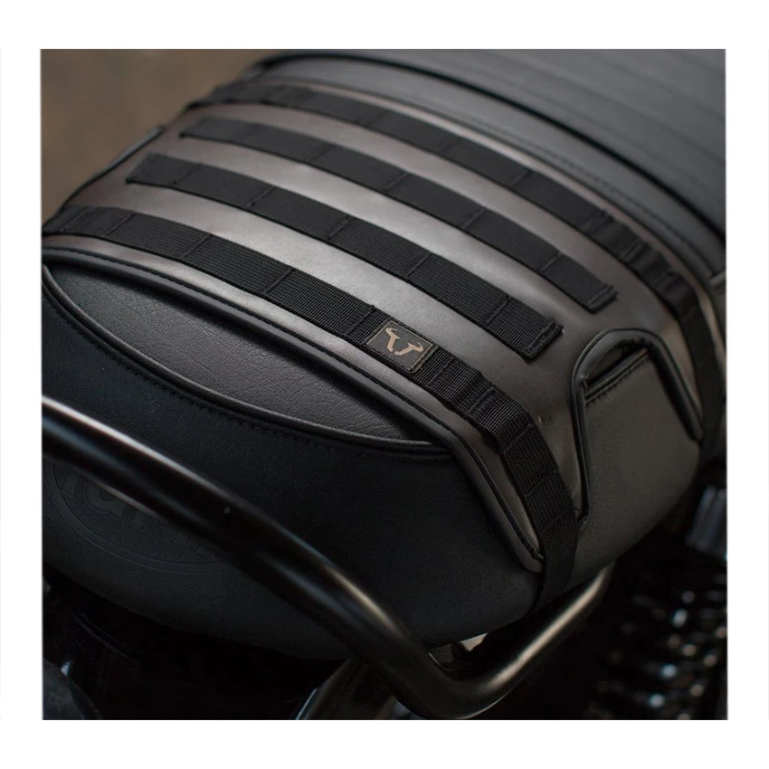 The SLS saddle strap provides secure grip for the LS1/LS2 saddlebags on straight bench saddles with a passenger seat. The elegant saddlebags from the Legend Gear series lend a special touch to Cafe Racers, Retro and Street Bikes.