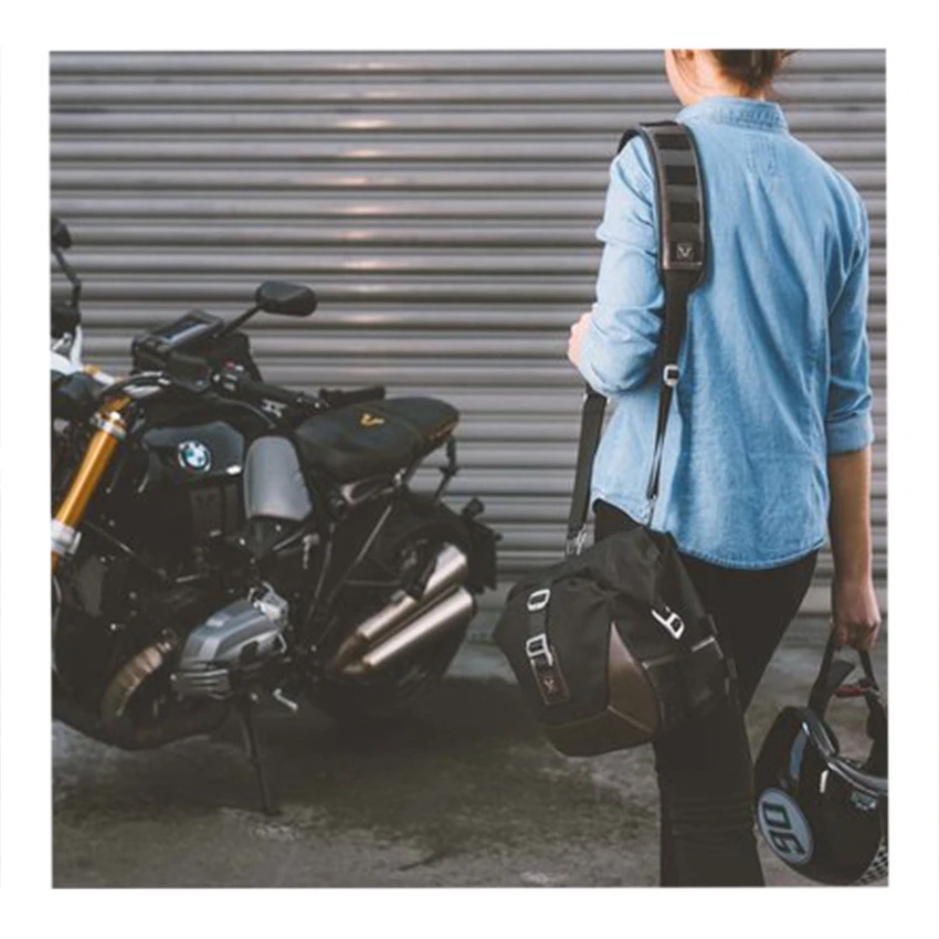 The Legend Gear shoulder strap LA4 completes the retro luggage portfolio by SW-MOTECH. Offering a classic style, the shoulder strap turns any saddlebag, tank bag and tail bag in the series into a practical shoulder bag. Padded and adjustable in length from 90 to 150cm, the shoulder strap LA4 offers high wearing comfort. Holding straps also allow a secure and flexible attachment of Legend Gear accessory bags. Going with the Legend Gear look, the LA4 shoulder strap is made of rugged napalon synthetic leather, has a polyamide strap as well as hooks and buckles made of anodized aluminium.
