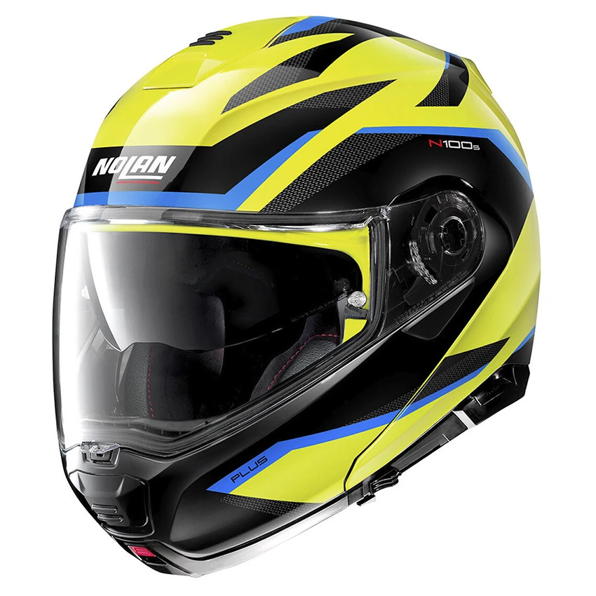 The consolidated technical features that make the N100-5 a highly appreciated product among the most demanding of motorbike tourists are all present: compact size (thanks to the availability of two outer shell sizes), double P/J homologation, ultrawide visor, VPS sunscreen (adjustable in various positions and fitted with the automatic retraction system), AirBooster Technology upper ventilation system, rotation of the chin guard with elliptical rotation, exclusive double-action chin guard opening mechanism, double lever Microlock2 retention system with micrometric adjustment, Clima Comfort inner padding (with micro-perforated fabrics and adjustable neck- roll) and set up for the N-Com communication system.