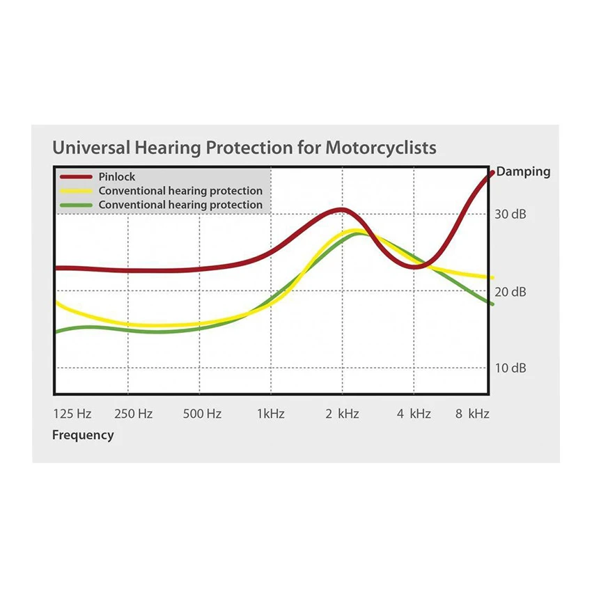This is where the new Pinlock earplugs excel. Pinlock, acknowledged as a leading brand in safety products has developed this new innovative hearing protection. Especially for motorcycle use and manufactured by specialists in The Netherlands to ensure premium quality. The Pinlock Earplugs differ from universal type hearing protection in the clever way the integrated precision filters brings the wind noise while riding down to a safer level, without causing a muffled or unnatural hearing experience. This advanced filter allows normal conversation without filtering important traffic sounds like sirens, horns or approaching vehicles.