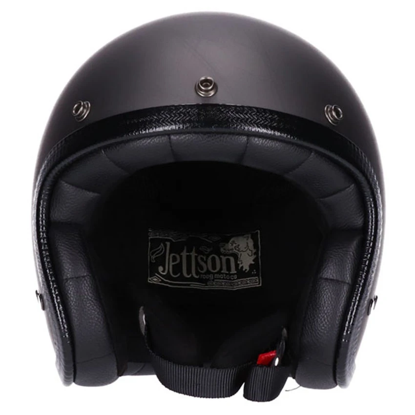 Featuring a classic Double D-ring adjustable chinstrap with Microtechnology fleece padding and premium brass integrated visor/shield snaps. Microtechnology fleece comfort lining with premium synthetic leather detailing for more comfort and classy touch. The Jettson 2.0 Hobo open face helmet vintage white is ECE 22.05 approved and is delivered including a removable black peak.