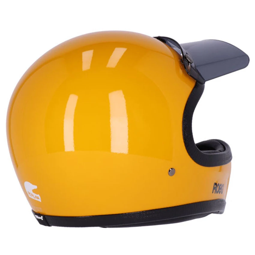 Adventure, for no good reason. It’s what makes the Roeg crew tick, it’s what they love, and it’s why they created the Peruna. Whether you’re kicking up dirt with friends, or finally heading out on that African desert trek you dreamt of, you need a Peruna. The Roeg Peruna 2.0 Sunset yellow helmet is made of ‘RQ LIGHT’ fiberglass shell with a multi-density EPS liner and available in two ergonomic shell sizes. Features a classic double D-ring adjustable chinstrap with microtech fleece padding, gunmetal grey integrated visor/shield snaps, Microtech fleece comfort lining which is remove- and washable, with premium perforated leather detailing, ECE-R22.05 approval, RQ XXL retro trim and removable dark smoke translucent peak.