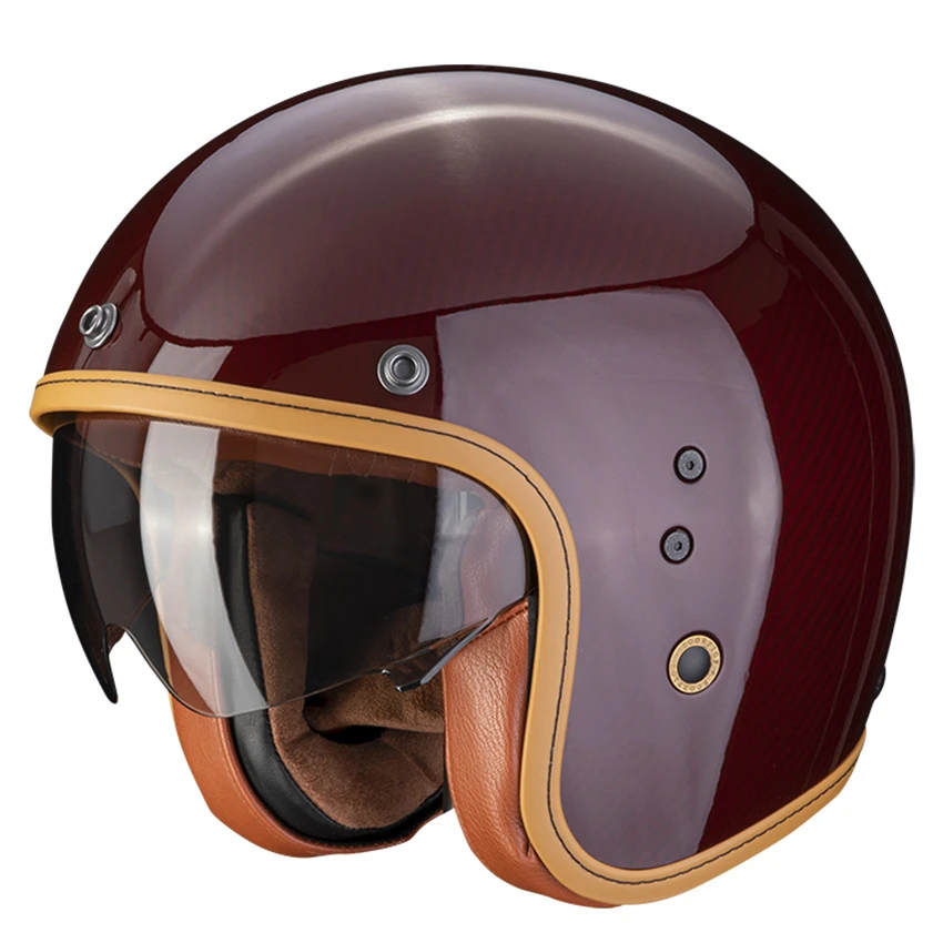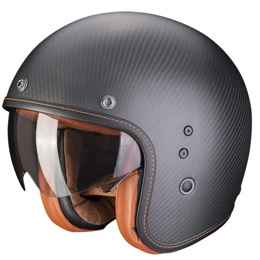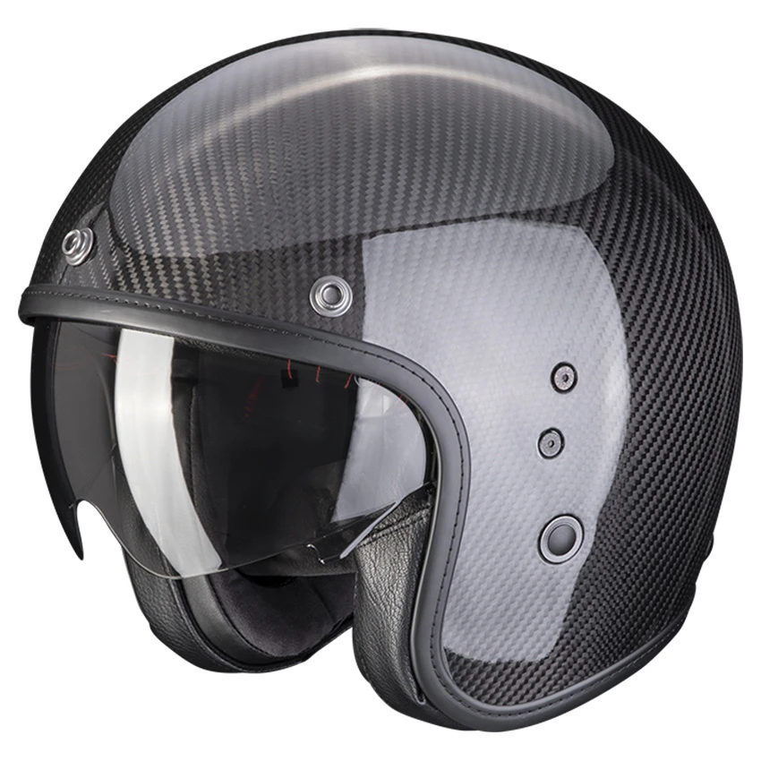 The Scorpion Belfast Carbon Evo offers comfort in a very stylish high quality jet helmet. Lightweight and comfortable, you’ll appreciate it the entire ride. The inner lining is made of high quality leather and is soft to the touch, which will make you appreciate it all the way through. Equipped with the Scorpion speedview sun visor for unhindered driving in sunny weather.