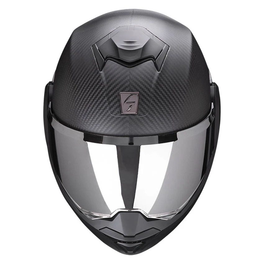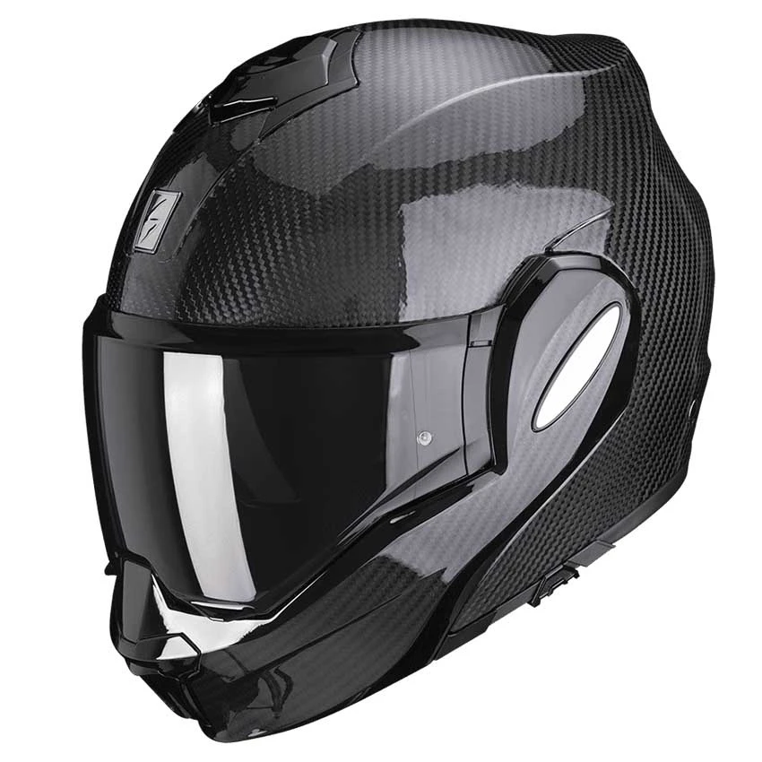 Scorpion’s flip-back masterpiece with a carbon composite shell. Exo-Tech Evo Carbon is a light-weight-flip-back helmet with all easy operation and convenient features plus chin bar locker for better safety. Small, sleek, and really full face looking shell design is still the same but with elegance and premium weaved carbon fibre surface adds an outstanding nobility. On top of that the Exo Tech Evo Carbon is ECE 22-06 certified.