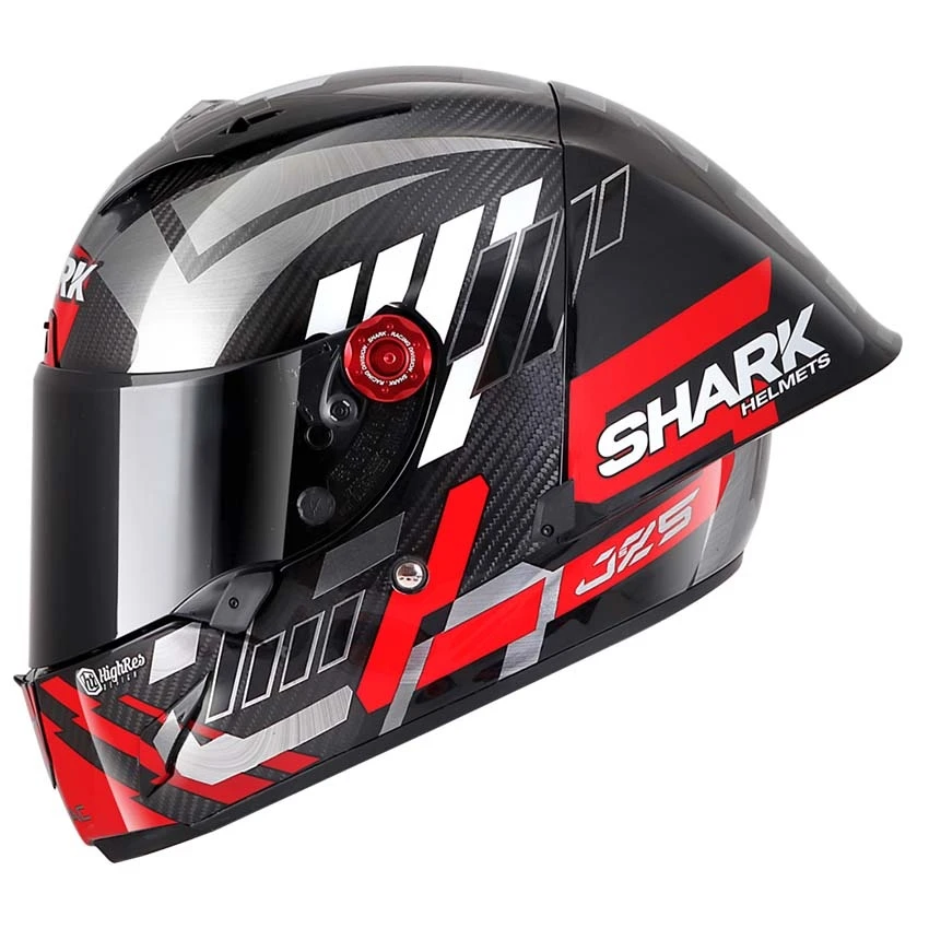 Optimal aerodynamics, the unique airfoil has been developed from digital simulations and validated in the wind tunnel for exceptional air penetration and minimised buffeting effect, offering optimal stability even at high speeds. Developed by our R&D design office and approved for use in competition. Premium finishes and, like Shark MotoGP riders, you can enjoy a Racing package comprising an official carry bag and a Dark Smoke anti-scratch and anti-fog visor.