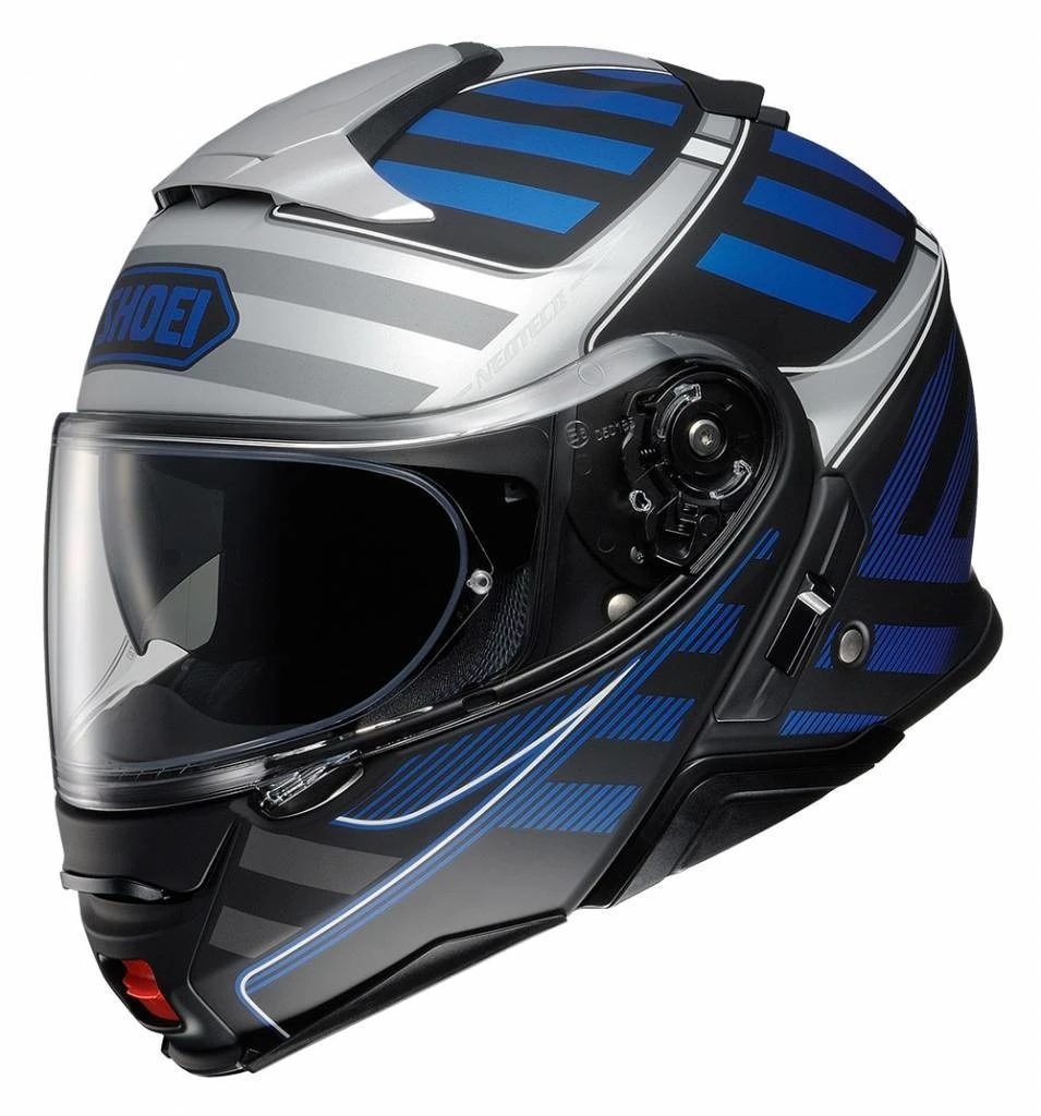 The Shoei Neotec II Splicer is state-of-the-art. Improved functionality and comfort. Because the Neotec 2 is designed for different types of motorcyclists, the shell has a unique shape that performs excellently in all kinds of positions. Made with a multi-composite fibreglass outer shell for perfect impact protection. Together with the EPS liner with double density system inner shell for optimized protection with different shock-absorbing levels.